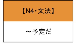 文法:~予定だ・接続V辞書形+予定だN+の予定だ・意味予定、スケジュールを言うとき・ポイント意志に関係なく使えるカレンダーやタイムスケジュールを見ながら話すようなイメージ例文V辞書形+予定だ・来週らいしゅうは日本にほんへ旅行りょこうする予定...