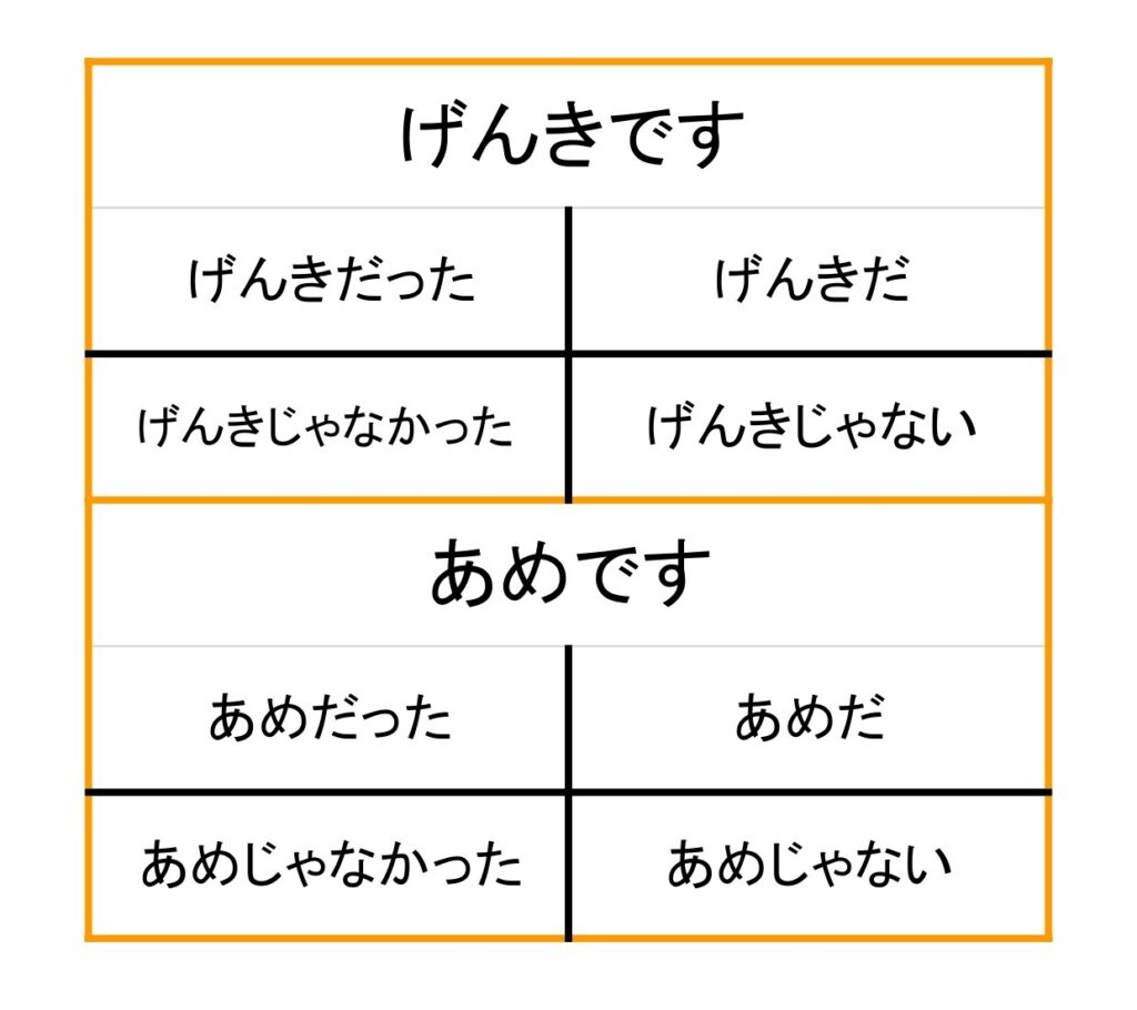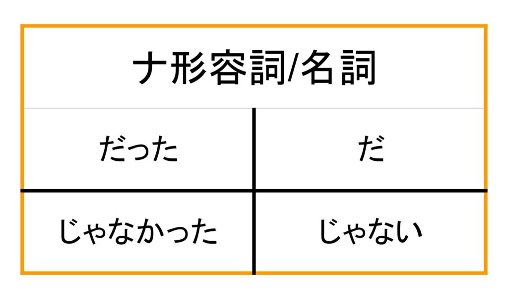ナ形容詞と名詞の普通形の活用は方法は同じになります。